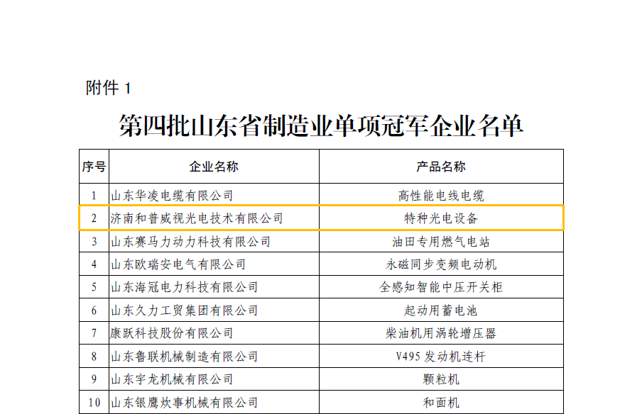 近日,山東省工業(yè)和信息化廳、山東省工業(yè)經(jīng)濟(jì)聯(lián)合會(huì)公布了第四批山東省制造業(yè)單項(xiàng)冠軍企業(yè)名單,和普威視榜上有名!